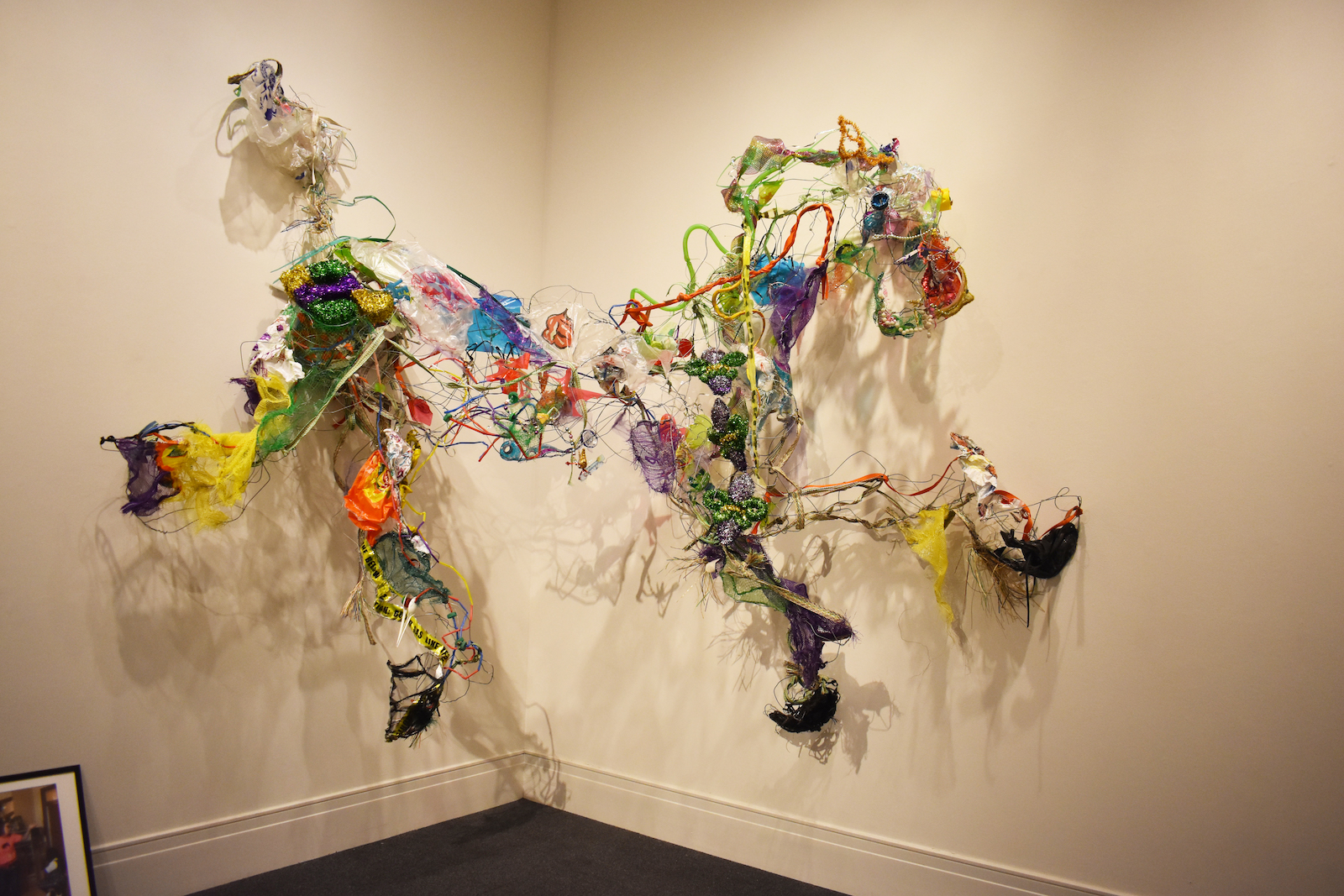 Jacquline Inglefield, Shell Pony, 2025, Recycled Jazz Fest trash, baling wire, Courtesy of the artist