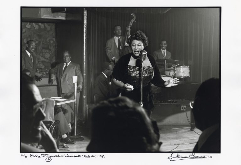 In 2005, Herman Leonard was working with Ogden Museum of Southern Art on a major retrospective exhibition and publication when Hurricane Katrina began heading toward the city in August. The Museum agreed to store Leonard’s massive negative archive, saving it from the storm’s destruction and the flooding after the levees failed. The flooding destroyed Leonard’s home and studio in Lakeview, including his massive photography archive. Work on the exhibition and book at Ogden Museum resumed after the Museum reopened in October, culminating in a book and exhibition in 2006, both titled Jazz, Giants and Journeys: The Photography of Herman Leonard.